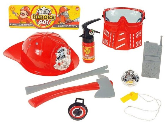 Zestaw strażaka z hełmem i maską; 38x29cm, PVC