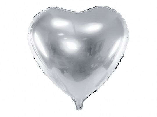 Balon foliowy metalizowany Serce w kolorze srebrnym, średnica ok. 61 cm (24").