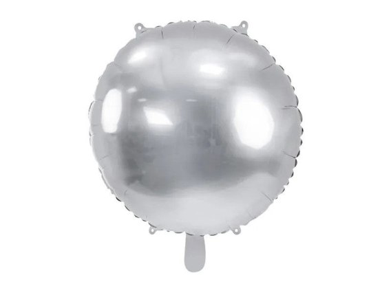 Lustrzany balon foliowy okrągły Pastylka w kolorze srebrnym, wymiary przed napompowaniem ok. 45 cm (18''), wymiary po napompowaniu ok. 35 cm (14''). Do napompowania helem i powietrzem. Zestaw zawiera słomkę.