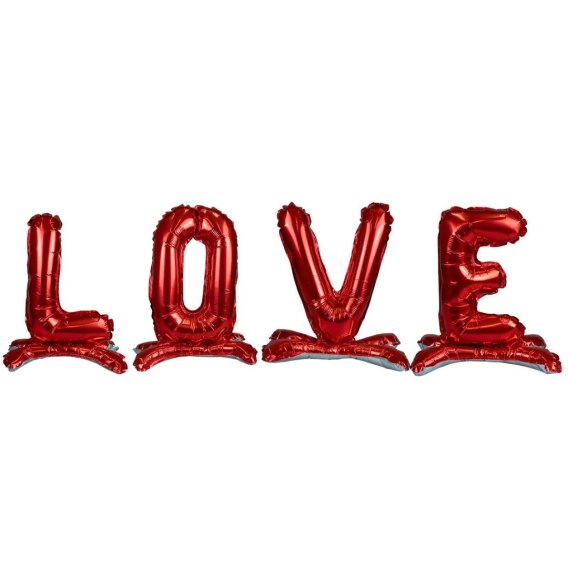 Zestaw balonów foliowych stojących "LOVE" w kolorze czerwonym.