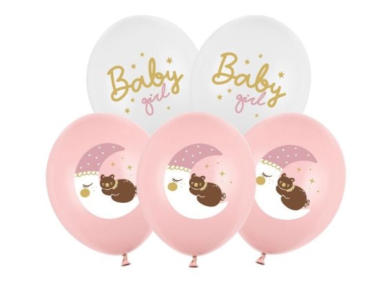 Balony Strong Baby girl z nadrukiem, zestaw zawiera 2 wzory: w kolorze Pastel Pale Pink dwustronnym nadrukiem i w kolorze Pastel Pure White z dwustronnym nadrukiem, średnica ok. 30 cm. (1 op. / 6 szt.)
