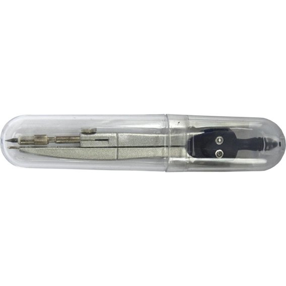 Cyrkiel metalowy, jednoelementowy w plastikowym, owalnym etui.