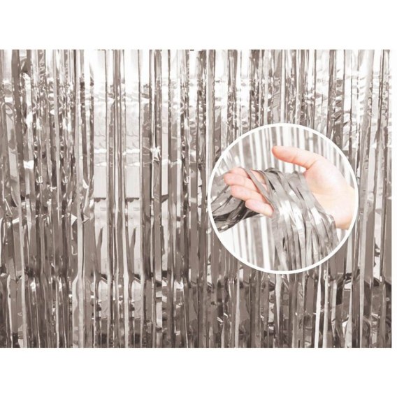 KURTYNA DEKORACYJNA NA DRZWI, SREBRNA ? 90 x 240 cm