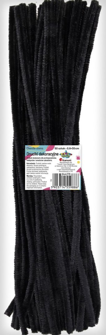 Druciki kreatywne, kolor: czarne, długość: 30 cm, szerokość: 0,6 cm. 50 sztuk.