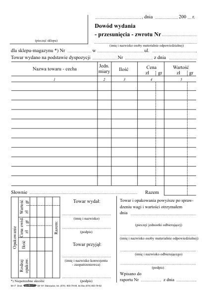Druk samokopiujący M17 A5 100k. Stolgraf (M17) Stolgraf