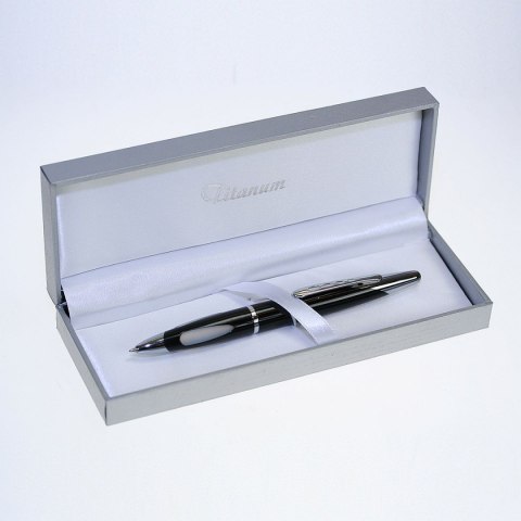 Metalowy długopis z obrotowym mechanizmem wysuwania wkładu. Wymienny wkład wielkopojemny. Grubość linii pisania: 0,7 mm. Kod etui satynowego: 93670