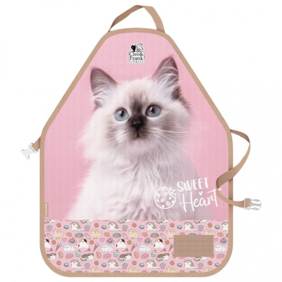 Ochronny fartuszek zapinany na klamrę, zabezpiecza odzież przed zabrudzeniem podczas prac kuchennych, plastycznych oraz różnych zabaw kreatywnych. Posiada etykietę na wpisanie danych dziecka. Może być prany ręcznie w temperaturze 30 stopni.