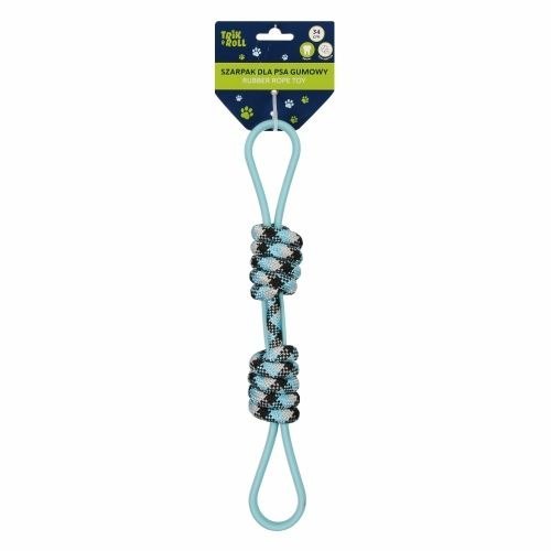 Zalety produktu: Szarpak dla psa TRIK&ROLL to elastyczna zabawka wykonana z miękkiej, wytrzymałej gumy, wyposażona w dwa uchwyty, jest bezpieczna dla psów, wolna od BPA, i nadaje się do recykling. Zabawka przeznaczona do aktywnej zabawy, takiej jak przeciąganie, aportowanie czy trening posłuszeństwa. Jest to idealna zabawka dla psów, które lubią przeciąganie i gryzienie, a jednocześnie potrzebują bezpiecznego i miękkiego materiału dla zębów. Zabawka idealna do przeciągania, aportowania oraz jako gryzak. Zabawka wykonana jest z gumy z zaplecionymi supłami z bawełnianego sznurka. Szarpak w kolorze niebieskim. Wymiary/waga: wymiary produktu (dł.)[cm]: 34 cm, waga produktu [kg]: 0,15 kg. Wymiary produktu z opakowaniem( szer. x wys.) (cm) 10x42cm. Zabawka pakowana w euro zawieszkę. Rekomendowana dla wszystkich ras psów.