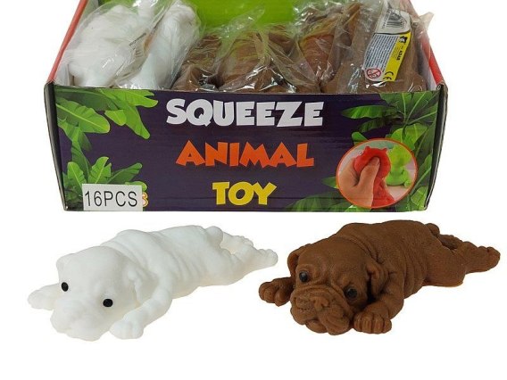 Gniotek pies, dł.ok. 14cm, display 16szt, 25x17,5x9cm, Box