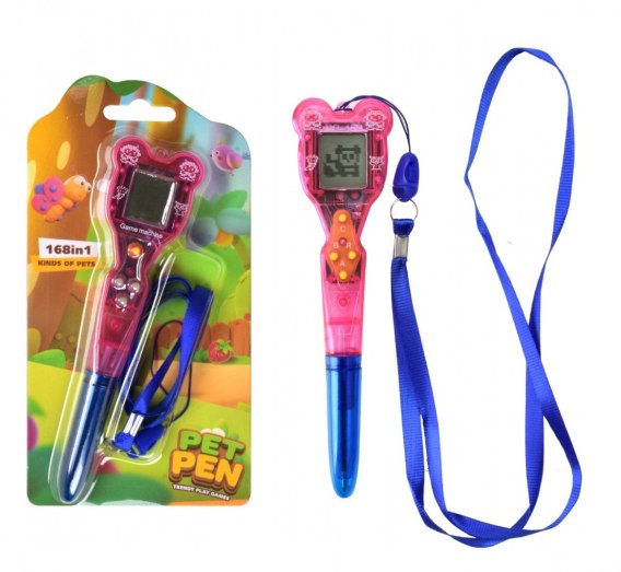 Gra elektroniczna z długopisem na smyczy.