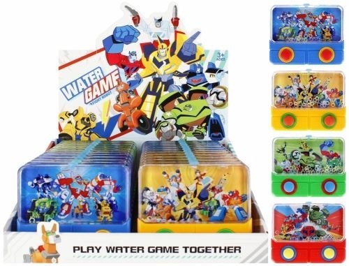 Zalety produktu: zadba o rozwój ruchowo-myślowy, występuje w czterech wzorach. Gra zręcznościowa polegająca na umieszczeniu wszystkich kolorowych obręczy na dwóch słupkach, posługując się jedynie dwoma przyciskami, które wprawią obręcze w ruch dyktowany przez znajdującą się w środku wodę. Zawartość zestawu: gra wodna Robot. Wymiary/waga/baterie: wymiary produktu dł. x wys. x gł. cm : 14x11x2, wymiary opakowania display A 24 dł. x wys. x gł. cm : 31x11x31, waga produktu bez opakowania kg : 0,37 kg, waga produktu w opakowaniu display kg 9,50 kg, nie wymaga zasilania bateriami. Zabawka przeznaczona dla dzieci w wieku: 3 . Pakowane w display po 24 szt. W kartonie zbiorczym po 72/144 szt.
