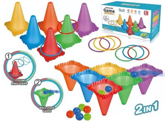 Gra zręcznościowa zestaw do gier plenerowych, 18 części, 6 pachołków, 6 piłeczek i 6 ringów Adar (631878) Adar