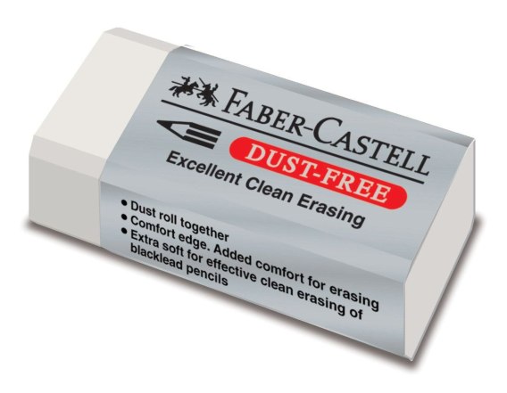 Gumka do wymazywania Dust Free Faber-Castell mała w kolorze białym w ochronnym opakowaniu. Zrównoważone połączenie tworzyw sztucznych powoduje, że wymazywanie nie zostawia smug. Odpowiednia do grafitowych ołówków i kredek.