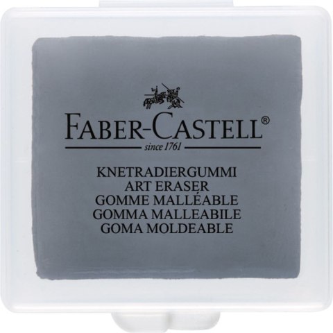 Gumka artystyczna chlebowa Faber-Castell w kolorze szarym. Umożliwia korekty i rozjaśnienie rysunku wykonanego miękkim ołówkiem, węglem, pastelami lub kredką. Może również posłużyć do czyszczenia filmów fotograficznych. Bardzo łatwa do ugniatania i chłonna. Nie pozostawia śladów. Po zabrudzeniu gumki chlebowej należy ją rozgnieść i ponownie uformować. W komplecie z przezroczystym pudełkiem do przechowywania.