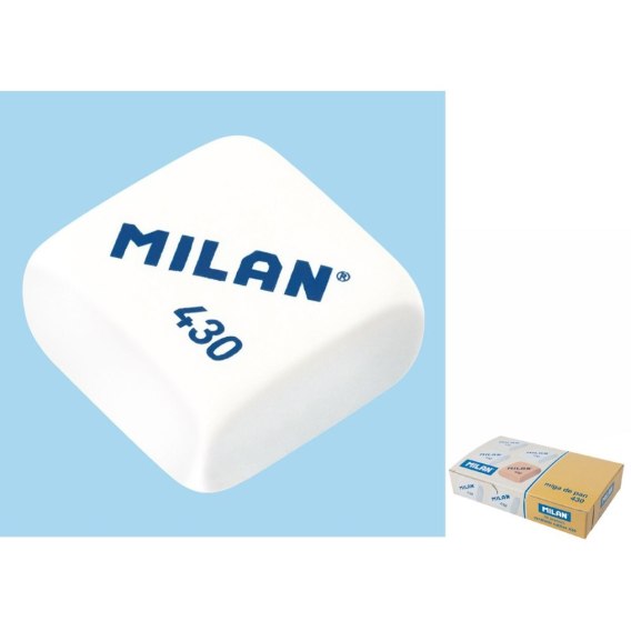 Kwadratowa miękka gumka z syntetycznego kauczuku do usuwania szerokiej gamy grafitowych pociągnięć ołówkiem ze wszystkich rodzajów papieru. Klasyczna gumka MILAN jest jednym z najlepiej sprzedających się produktów MILANa. Dostępna w 2 kolorach: białym i różowym. Wyprodukowana w Hiszpanii. Rozmiar gumki: 2,8 x 2,8 x 1,3 cm. Gumka 430 pasuje na wymianę do każdej temperówko-gumki i gumko-zmiotki z serii COMPACT.