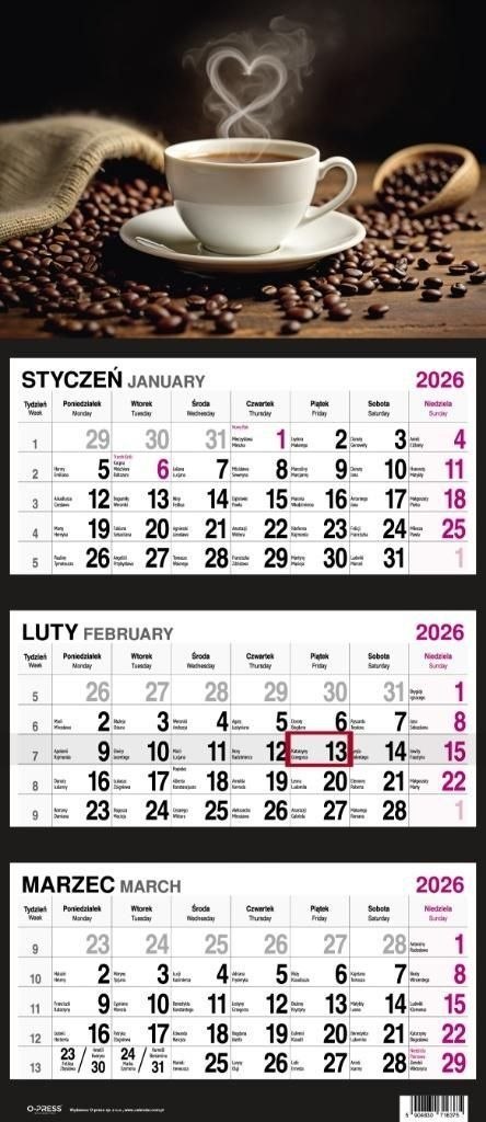 • Kalendarz ścienny KAWA 310mm x 790mm Press Press