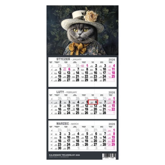 Kalendarz ścienny KOT A5 210mm x 450mm Press Press