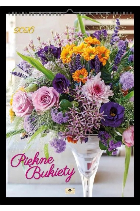 KALENDARZ 2026 A2 ŚCIENNY JEDNOSTRONNY 12 KART + 2 OKŁADKI, PAPIER KREDOWY, OPRAWA Z ZAWIESZKĄ, ,DUŻE CZYTELNE KALENDARIA W JĘZYKU PL,EN,DE,UA. Tematyka kwiaty, bukiety, glamour.