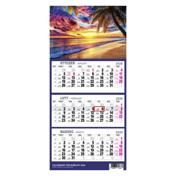 Kalendarz ścienny PLAŻA A4 210mm x 450mm Press Press