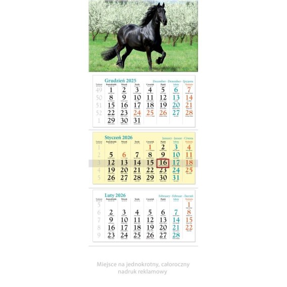 papier: główka – karton 230 g/m²; plecy – karton 300 g/m²; kalendarium –