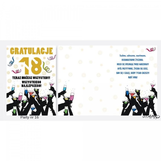 Kartka składana B6 PARTY Urodzinowy 18 lat Ev-corp (STKP-016) Ev-corp