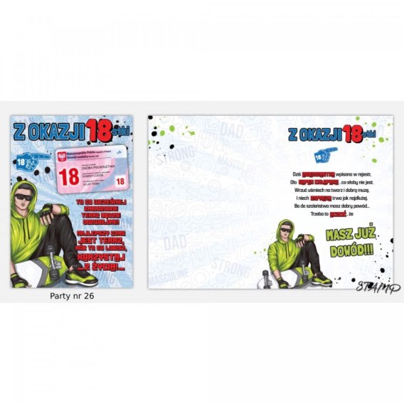 Karnet B6 + Koperta Urodzinowy dla chłopaka 18 lat Party 002