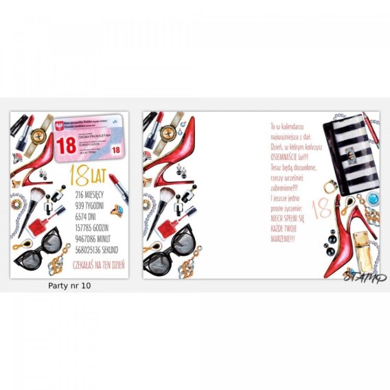 Kartka składana B6 PARTY Urodzinowy dla dziewczyny 18 lat Ev-corp (STKP-010) Ev-corp