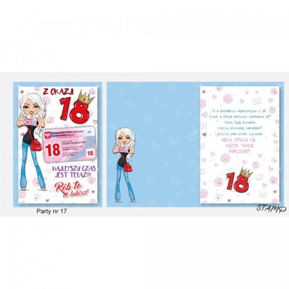 Kartka składana PARTY Urodzinowy dla dziewczyny 18 lat B6 Ev-corp (STKP-017) Ev-corp