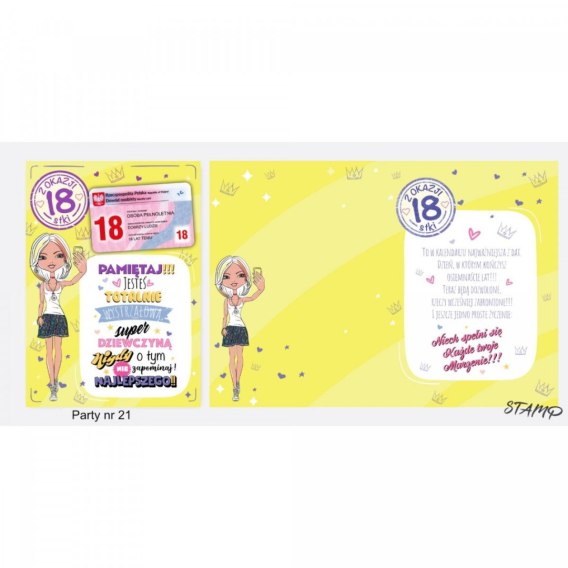 • Kartka składana PARTY Urodzinowy dla dziewczyny 18 lat B6 Ev-corp (STKP-021) Ev-corp