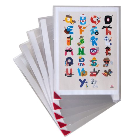 Samoprzylepna kieszeń na dokumenty Djois x Tarifold z serii Kang Easy Clic w rozmiarze A4 otwierana po przekątnej z łatwym narożnym zamknięciem na czerwony klips magnetyczny. Na tyle kieszeni znajdują się dwa samoprzylepne paski, które dają możliwość wielokrotnego przyklejenia do gładkich i płaskich powierzchni, bez użycia śrub i gwoździ. Błyskawiczny montaż i demontaż, nie pozostawia śladów. Kieszeń jest transparentna, doskonała do użycia na szkle, z możliwością dwustronnej prezentacji dokumentów. Wykonana z wytrzymałego, przyjaznego dla środowiska PVC 200 µ. Możliwe użycie zarówno w pionie jak i w poziomie. Dostarczana w opakowaniu po 5 szt.