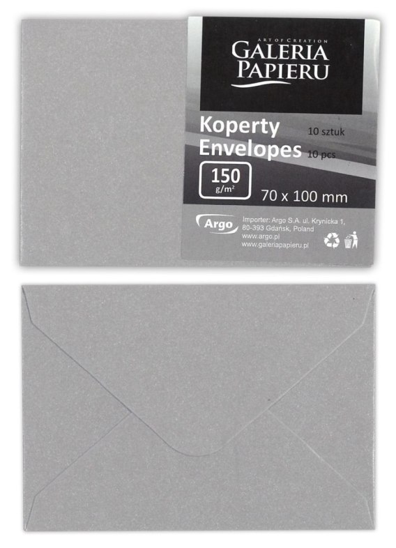 Koperta Pearl, gładka metalizowana, format: 70 x 100mm, gramatura: 150g/m2, ilość: 10 sztuk w opakowaniu, klejona na mokro,