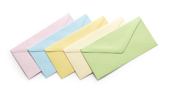 Koperta satynowa, format: 80 x 160mm, gramatura: 130g/m2, ilość: 50 sztuk w opakowaniu w 5 różnych kolorach, klejona na mokro,