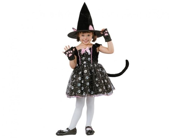 Kotek Czarownica (kapelusz, sukienka z ogonem, rękawiczki), rozm. 92/104 cm
