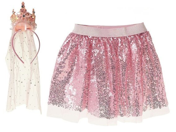 Zestaw karnawałowy księżniczka - opaska z koroną i welonem, spódniczka na gumce z regulowaną szerokością i tiulową podszewką dł. 28cm, 36x25x4cm
