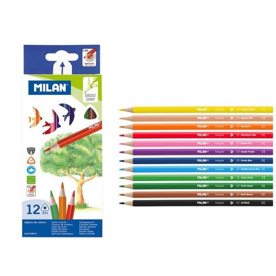 Kredki ołówkowe 231 trójkątne 12 kol. Milan (0728312) Milan