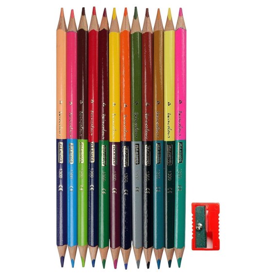 Zestaw 12 dwustronnych kredek ołówkowych.