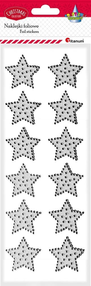 Naklejki foliowe z kryształkami. Kształt: gwiazdki. Kolor: białe. Wymiary: 40 mm.