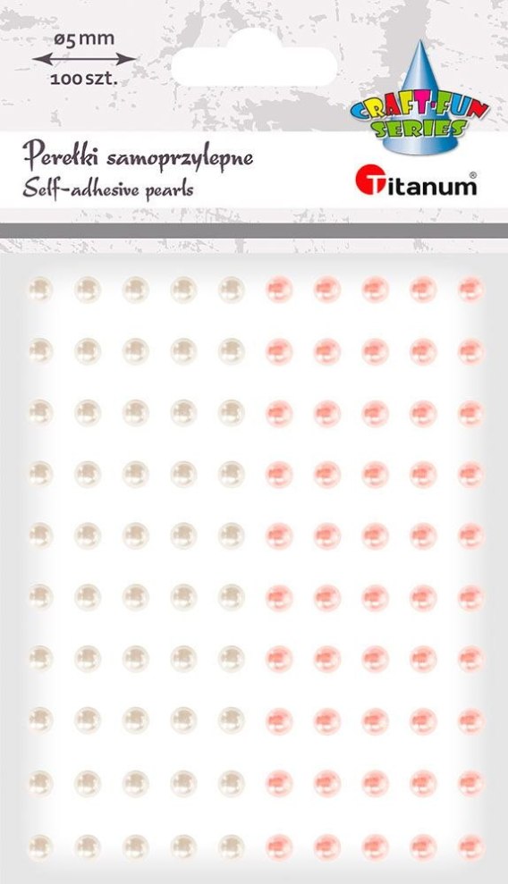 Perełki samoprzylepne, średnica: 5 mm, kolor: białe, bladoróżowe. 100 sztuk.