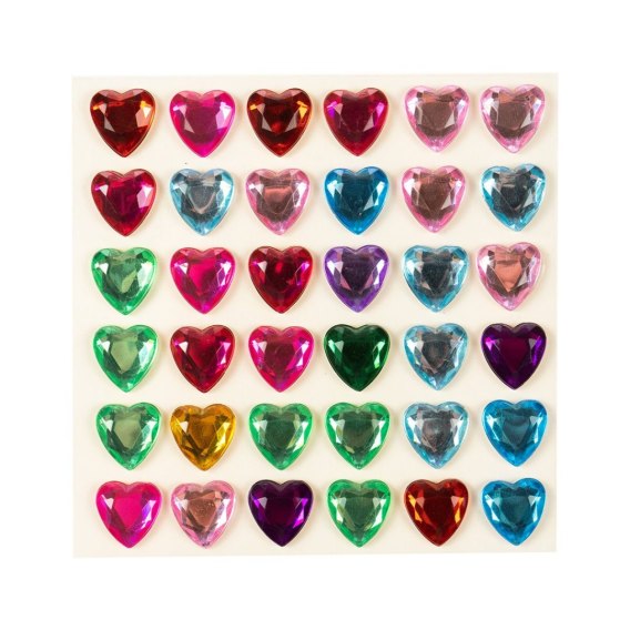Dekoracyjne kryształki w kształcie kolorowych serduszek. Ozdobne diamenciki samoprzylepne, mix ozdób do prac kreatywnych, szkolnych, dekoracji kartek urodzinowych, zaproszeń, albumów ze zdjęciami, przedmiotów.