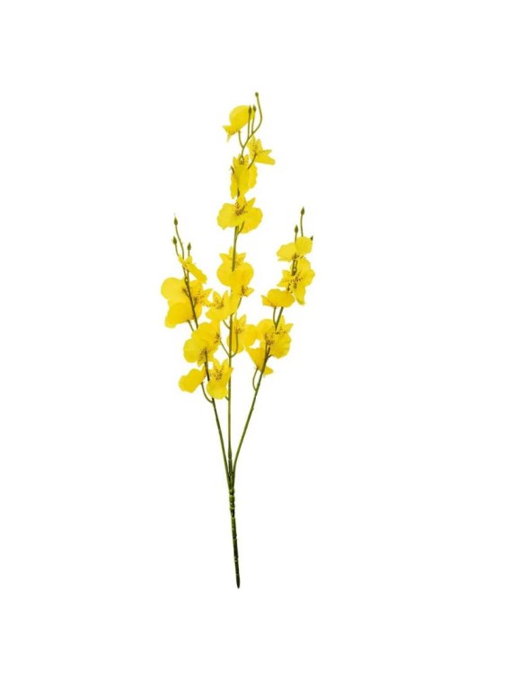 Gałązka storczyka mini to subtelna i elegancka dekoracja, która wprowadza do wnętrza lekki, wiosenny akcent. Smukłe łodygi z drobnymi, żółtymi kwiatami prezentują się bardzo naturalnie i delikatnie, dzięki czemu idealnie komponują się zarówno w pojedynczej ekspozycji, jak i w większych aranżacjach florystycznych.