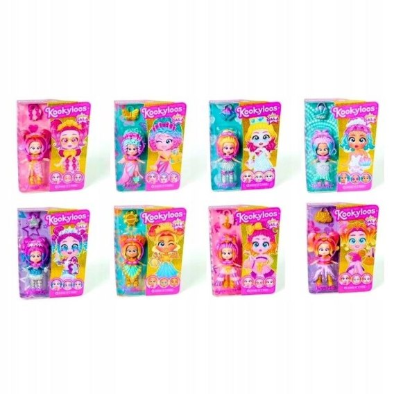 Do każdej Kookyloos dołączona jest torebeczka i opaska, które można wymieniać z innymi Kookyloos. Pamiętaj, że każda laleczka ma trzy różne minki, które można zmienić jednym ruchem.