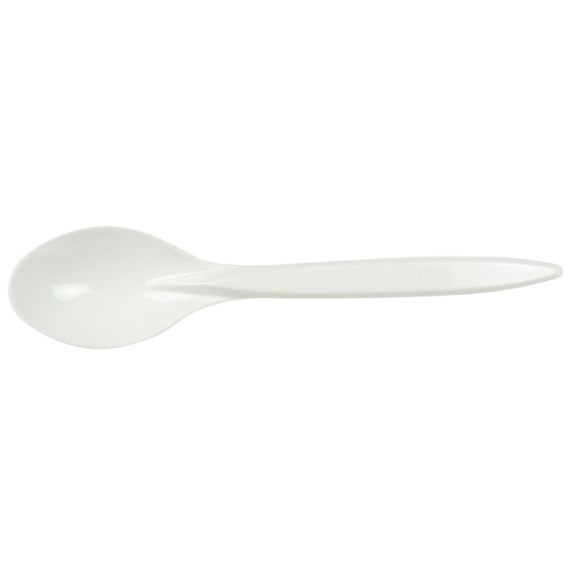 Łyżki wielorazowe wykonane z tworzywa w kolorze białym. Wytrzymałe a zarazem lekkie i wygodne sztućce wielokrotnego użytku.