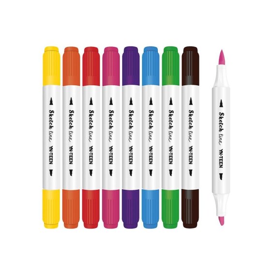 Dwustronne, uniwersalne markery, które sprawdzą się nie tylko do rysowania i zaznaczania, ale także do kolorowania i sketchnotingu. Okrągły profil. 8 intensywnych kolorów w opakowaniu. Wyposażone w 2 różne końcówki: ściętą i pędzelkową. Bezpieczny i szybkoschnący tusz na bazie barwnika. Sketch markery to świetna alternatywa dla osób poszukujących korzystnego cenowo produktu, posiadającego cechy markera do szkicowania. Jest to również produkt dedykowany do kreatywnego planowania i Bullet Journali - znajdziesz je w naszej ofercie papierniczej.