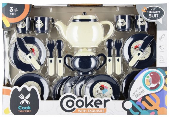 Zalety produktu Naczynia kuchenne MEGA CREATIVE doskonale sprawdzą się podczas zabawy w przygotowywanie pysznej herbatki, kawki, ciast, ciasteczek. Tak bogate wyposażenie zestawu może sprawić, że zabawa przerodzi się w prawdziwą ucztę i mile spotkanie przy herbatce, kawce Zawartość zestawu 7x talerzyk,4x kubek, 1x czajniczek na herbatę, 1x czajniczek na kawę, 2x kpl sztućców. Wszystkie elementy wykonano z plastiku. Wymiary/waga/baterie wymiary produktu dł. x wys. x gł. cm czajnik na kawę 17x10x9, , waga produktu bez opakowania kg 0,41 kg, wymiary opakowania dł. x wys. x gł. cm 47x32x97, waga produktu w opakowaniu kg. 0,50 kg, Nie wymaga zasilania bateriami. Zabawka przeznaczona dla dzieci w wieku 3 .Pakowany w kartonik z okienkiem W kartonie zbiorczym po 36 szt.