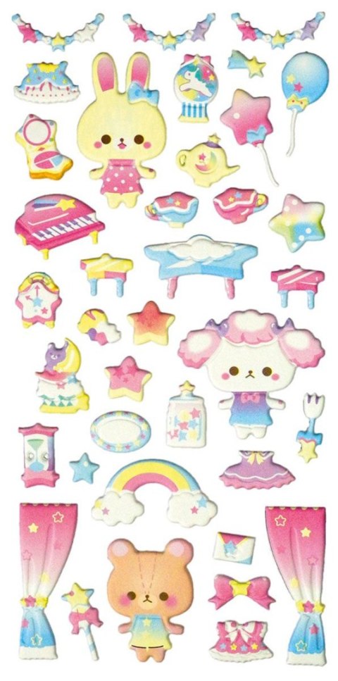 Naklejki wypukłe, wzory: akcesoria w pokoju dziewczynki. 38 sztuki.