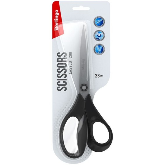 Opakowanie zawiera (12 szt.) wysokiej jakości wszechstronnych i uniwersalnych nożyczek Berlingo (serii EasyCut) które stanowią nieodłączny element każdego biura lub domu. Pakowane w wygodny blister z zawieszką euro.