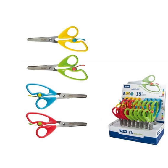 Nożyczki szkolne z amortyzacją czyli tzw. systemem powrotnym, który łatwo tnie, oszczędzając energię. Kształtem nawiązujące do motyla. Plastikowa rączka. Długość 14,4 cm. Idealne do użytku szkolnego. Dostępne w 4 kolorach: żółtym, niebieskim, czerwonym i zielonym. Oryginalny produkt stworzony przez własny dział badawczo-rozwojowy MILAN. Rozmiar nożyczek: 14,4 x 6,5 x 1,5 cm.