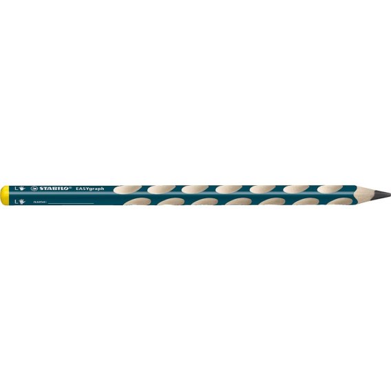 Ołówki STABILO EASYgraph dla leworęcznych. Kolor petrol. Twardość HB. Ergonomiczne ołówki o trójkątnym przekroju zapewniają wygodny chwyt podczas rysowania. Dostępne są w 2 wersjach: dla osób prawo- lub leworęcznych w kilku odcieniach kolorystycznych. Specjalny kod kolorystyczny umożliwiający rozpoznanie wersji: żółty kolor końcówki ? dla leworęcznych, czerwony dla praworęcznych. Specjalny lakier zabezpieczający przed brudzeniem strefy uchwytu. Nawet po zatemperowaniu palce znajdują wygodną pozycję do trzymania. Specjalne miejsce na wpisanie imienia. Dostępne twardości: HB i 2B. Średnica grafitu ? 3,15 mm. Posiadają certyfikat PEFC ? produkt ekologiczny. Produkty z serii EASYergonomics experts zostały wyróżnion eprzez rodziców i otrzymały oznaczenie "NAGRODA RODZICóW 2014".