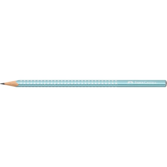 Ołówek grafitowy Sparkle Faber-Castell w kolorze Metallic Ocean (niebieski metaliczny). Unikalny design z atrakcyjnymi błyszczącymi kropkami został zaprojektowany tak, aby dodać blasku biurkowej codzienności. Ołówek posiada brokatową końcówkę. Ergonomiczny trójkątny kształt zapewnia wysoki komfort użytkowania i niemęczące, wygodne pisanie i szkicowanie. Odpowiedni również dla leworęcznych. Z odpornym na pękanie grafitem o stopniu twardości B, dzięki bezpiecznemu procesowi wiązania (SV). Wykonany z certyfikowanego drewna pochodzącego ze zrównoważonego i odpowiedzialnie zarządzanego leśnictwa. Powierzchnia pokryta lakierem na bazie wody – bezpiecznym dla środowiska i zdrowia dzieci.
