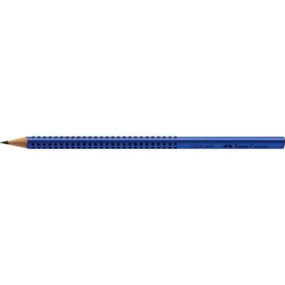 Ołówek grafitowy Grip 2001 Faber-Castell w kolorze niebieskim. Nawet w czasach zdominowanych przez komputery, telefony i internet, ołówek wciąż pozostaje nieodłącznym towarzyszem codzienności. To doskonałe w swojej prostocie narzędzie. Ergonomiczny trójkątny kształt i charakterystyczna dla tej serii opatentowana strefa Grip z małymi, antypoślizgowymi punktami zapewniają wysoki komfort użytkowania i niemęczące, wygodne pisanie i szkicowanie. Odpowiedni również dla leworęcznych. Z odpornym na pękanie grafitem o stopniu twardości B, dzięki bezpiecznemu procesowi wiązania (SV). Wykonany z certyfikowanego drewna pochodzącego ze zrównoważonego i odpowiedzialnie zarządzanego leśnictwa. Powierzchnia pokryta lakierem na bazie wody – bezpiecznym dla środowiska i zdrowia dzieci.